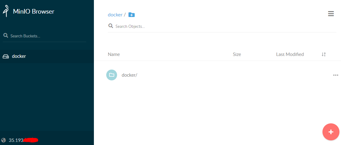 registry로 사용할 bucket을 생성하자. minio cli를 별도로 설치해서 생성해도 되지만, 간단하기 UI로 생성/관리 할 수 있다. 화면 우측 하단 플러스 버튼을 클릭해 생성한다.