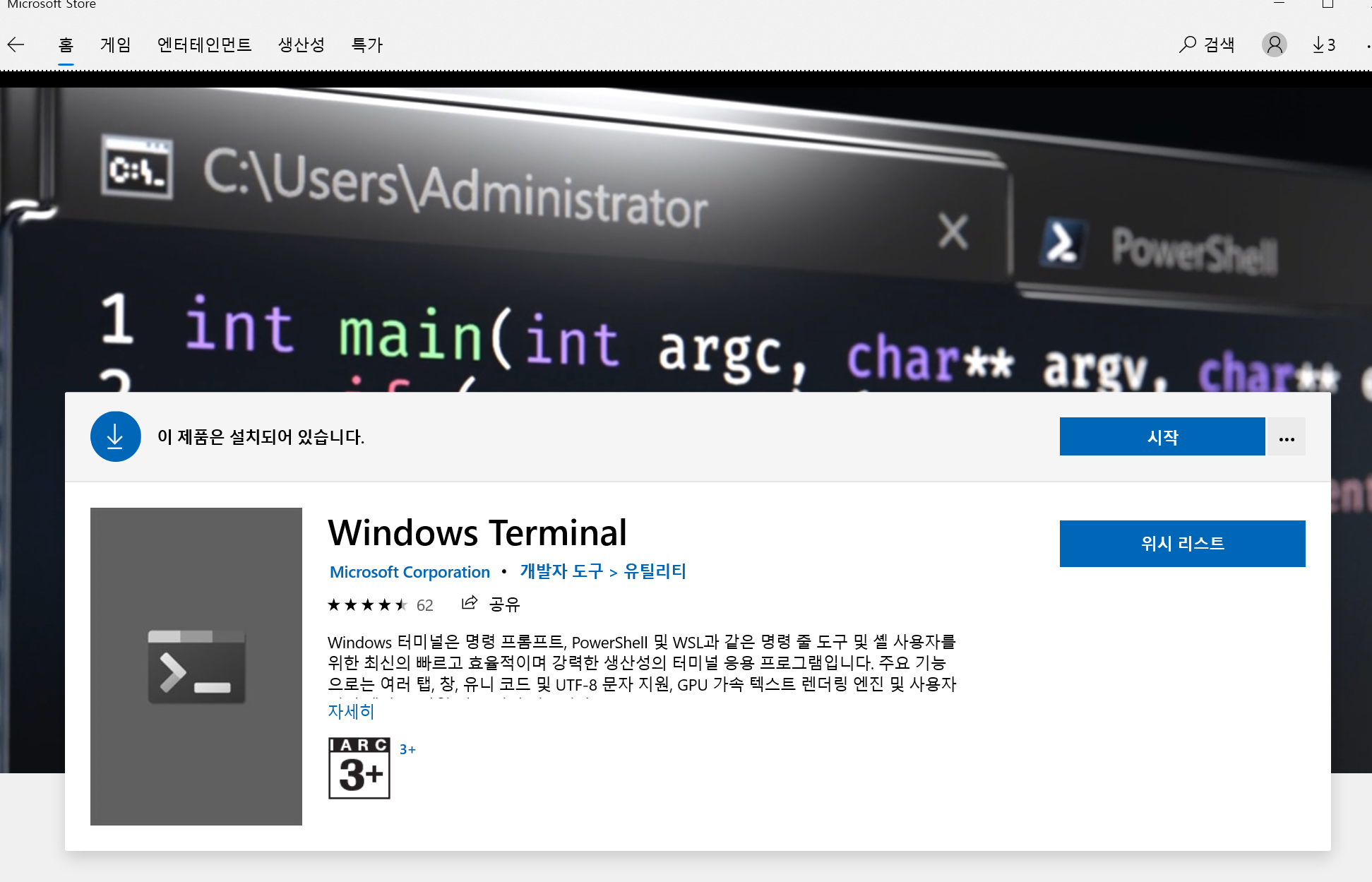 Windows Terminal은 Microsoft Store에서 받을 수 있다.