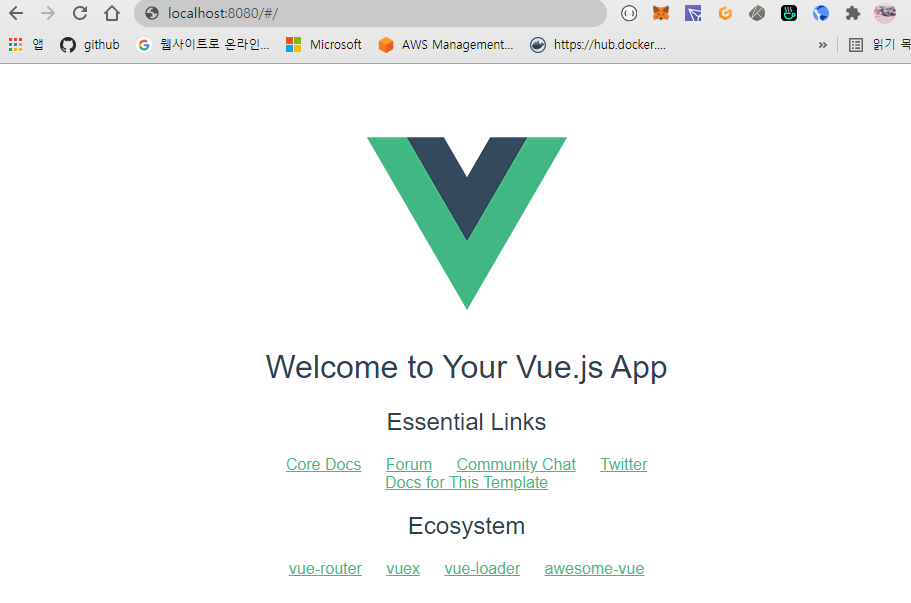 브라우저에서 localhost:8080에 접속하면 vue 초기 화면을 확인할 수 있다.