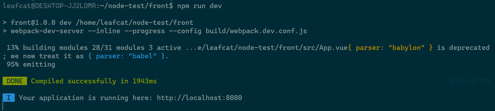 4. front 디렉터리로 이동해서 vue 프로젝트 실행해보기