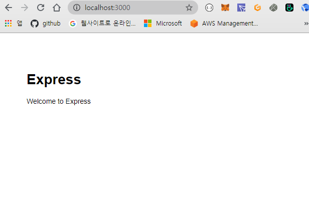 브라우저에서 localhost:3000 접속하면 Express 초기 화면이 나타난다.