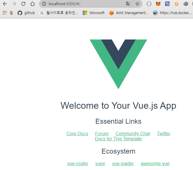 localhost:3000 (express 서버)로 접속하면 vue 화면이 보이는 것을 확인할 수 있다.